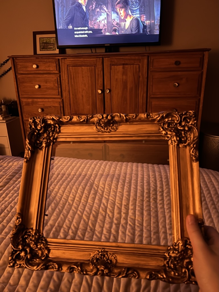 You may not know me or my style very well yet, but there’s one thing I’ll tell you: I love gold and brass. I felt like this frame had perfect detailing to really pop as a gilded frame. I enlisted some help from Rub-n-Buff (this stuff is awesome) and got to work.
