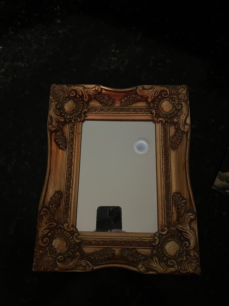 Last year I picked up this really ornate mirror from a yard sale for $2. I didn’t know what to do with it so it has just been sitting in the closet since then.
